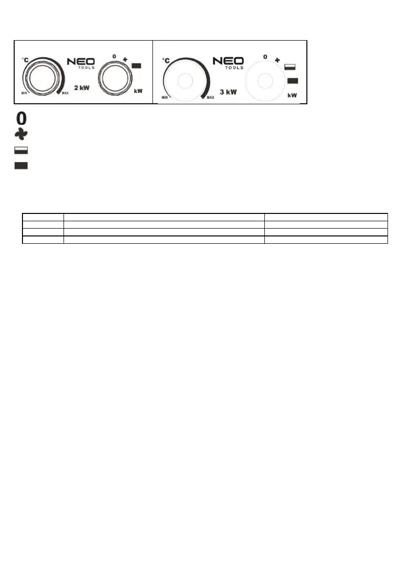 6.6 Před vypnutím ohřívače otočte termostat do polohy MIN a přepněte přepínač do polohy ventilátoru, nechte spotřebič vychladnout po dobu dvou