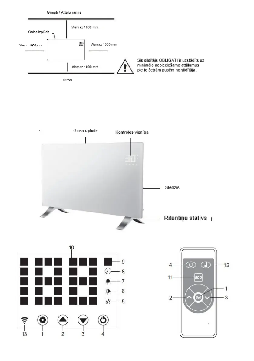 5. Kad sildītājs ir uzstādīts, pārliecinieties, ka attālums starp sildītāja dibenu un grīdu nav mazāks par 10 cm