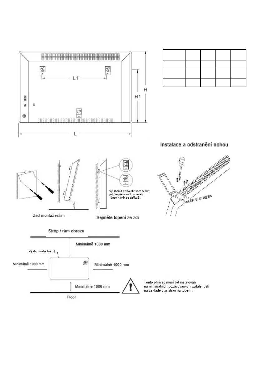 5. Při instalaci topného tělesa se ujistěte, že vzdálenost mezi dnem topného tělesa a podlahou není menší než 10 cm