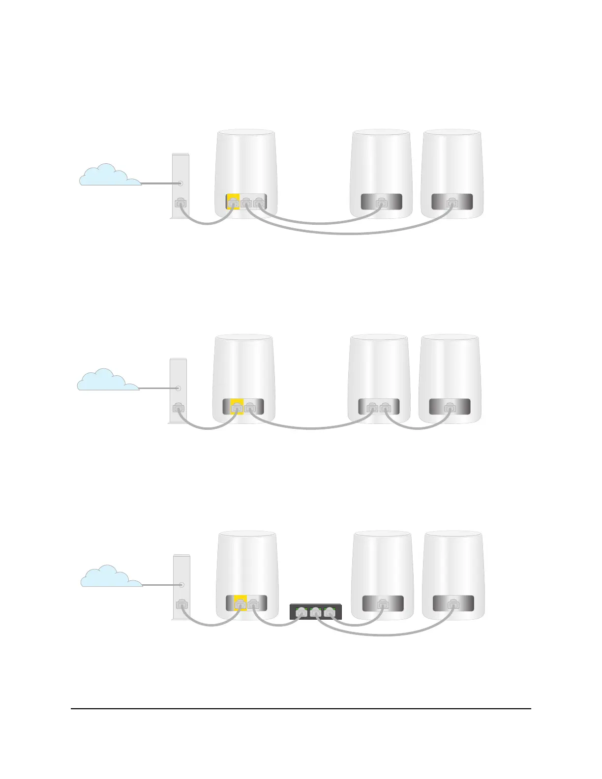 The following figure shows how to connect your Orbi satellites to your Orbi router using