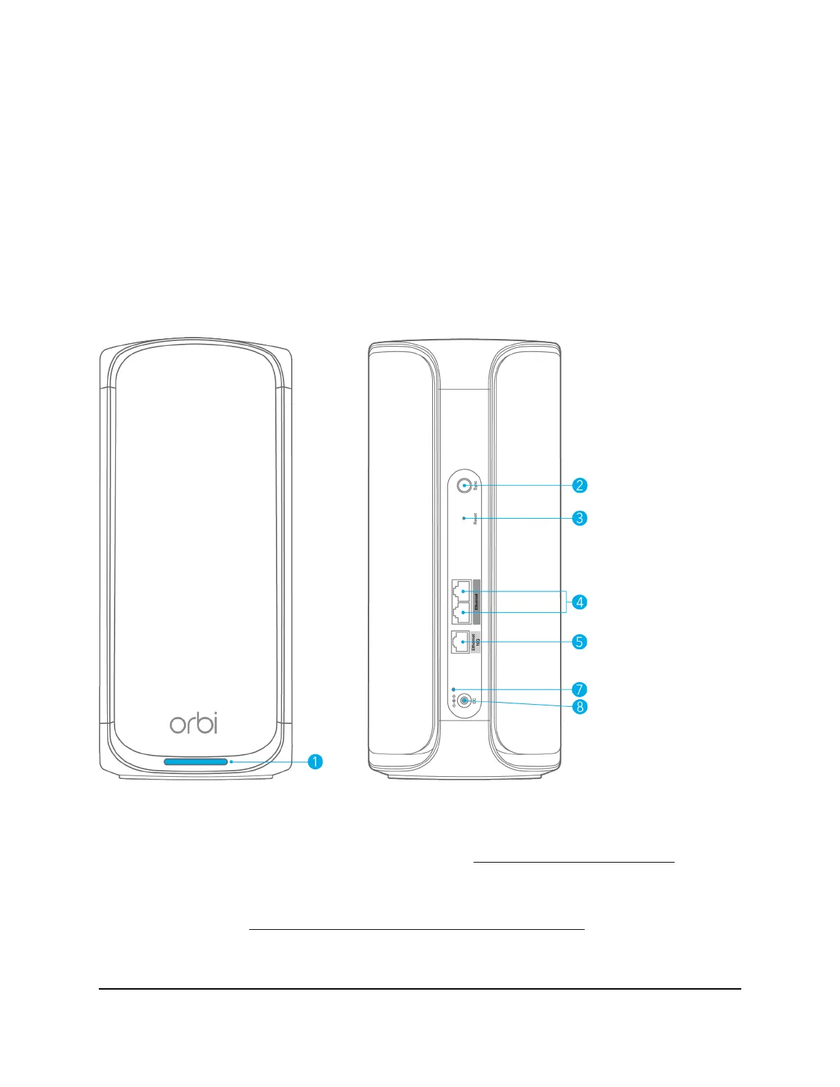 The following figures shows the Orbi satellite hardware features.