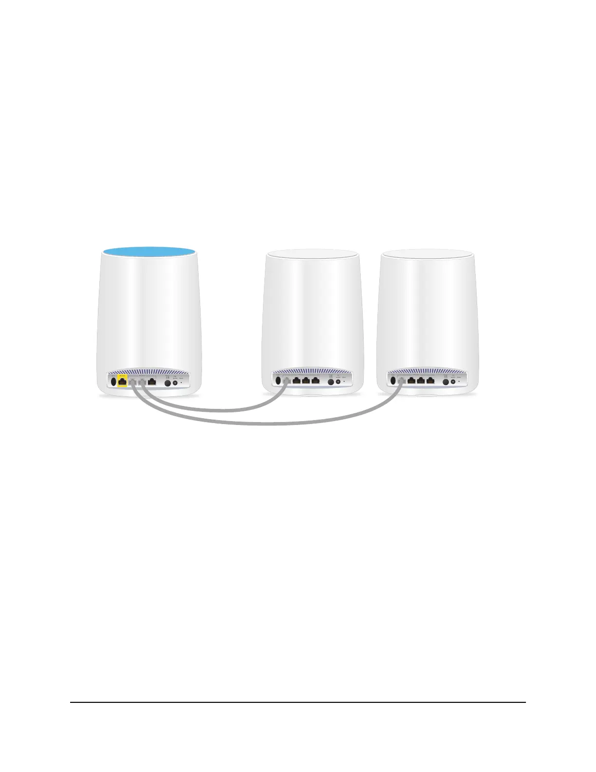 The following image shows how to connect your Orbi satellites to your Orbi router to