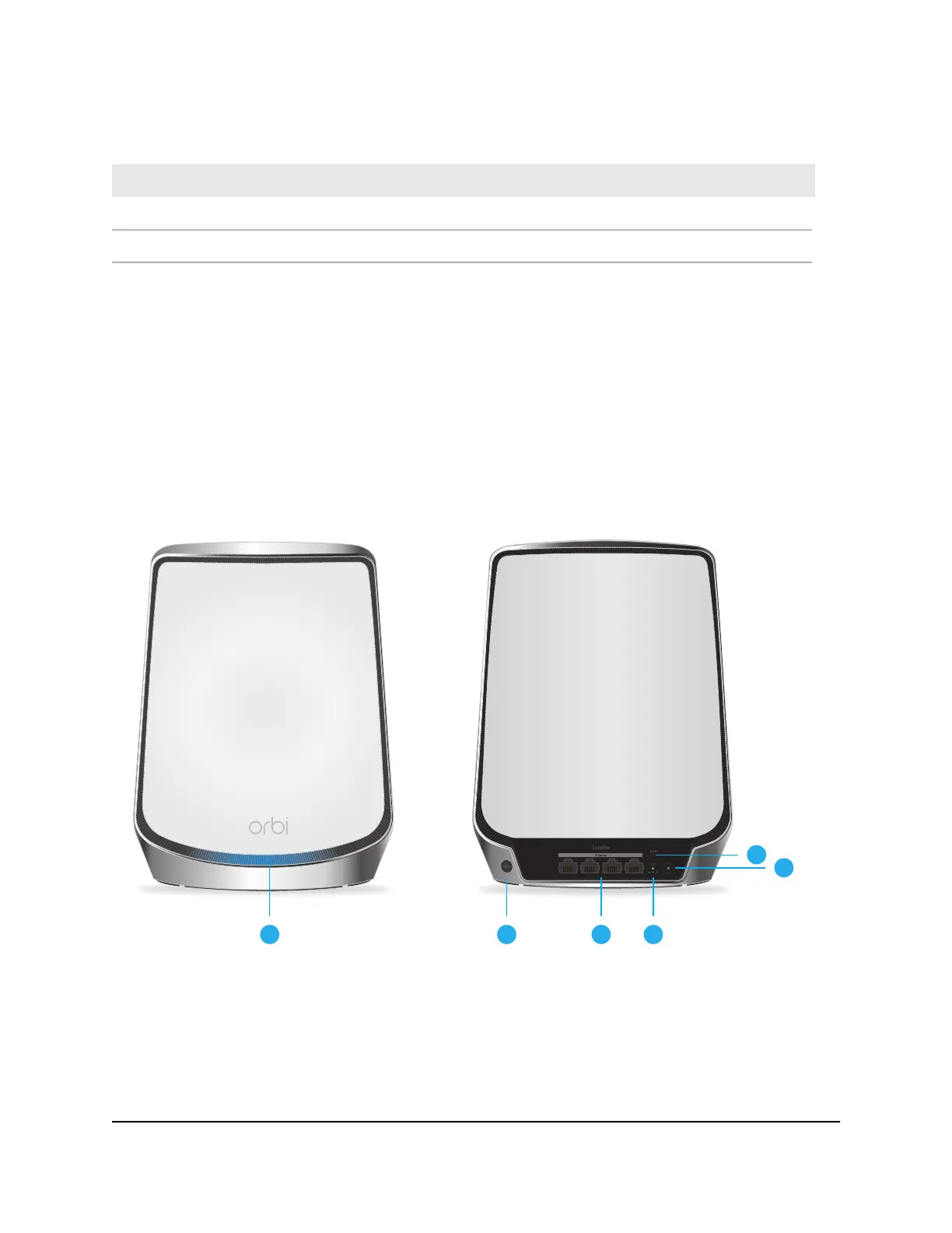 The following figures shows the Orbi satellite hardware features.