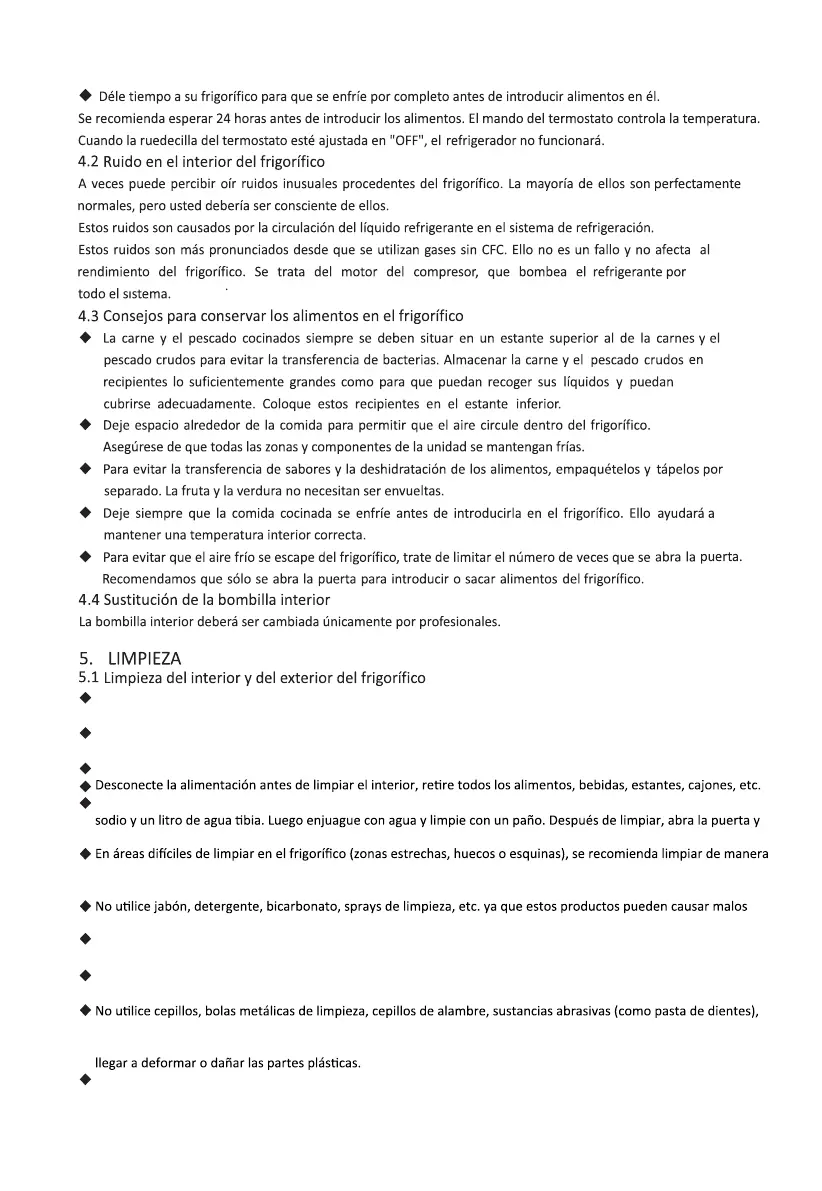 pueden dañar al interior y el exterior del frigorífico. Agua hirviendo y disolventes orgánicos como el benceno puede