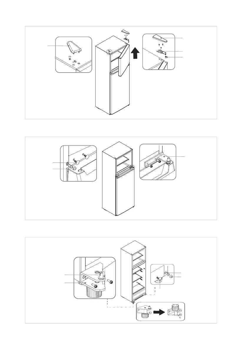 la bisagra inferior y el pie de ajuste en el otro lado de la bisagra inferior y, a