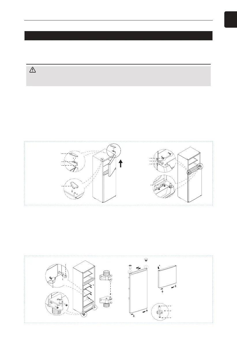 install the upper hinge sleeve on the freezer door to the hole on the otherside of axis sleeve.