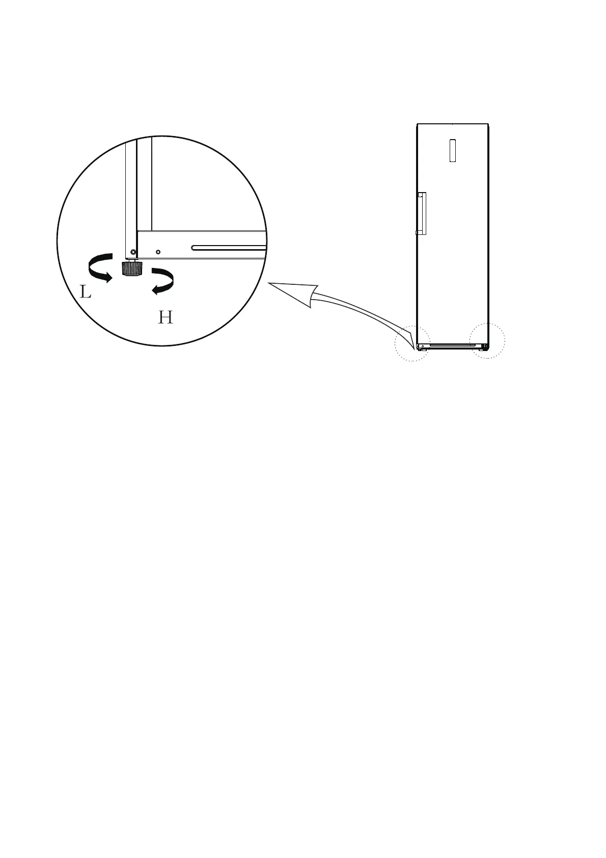 b. Turn the feet counterclockwise tolowerthe refrigerator;