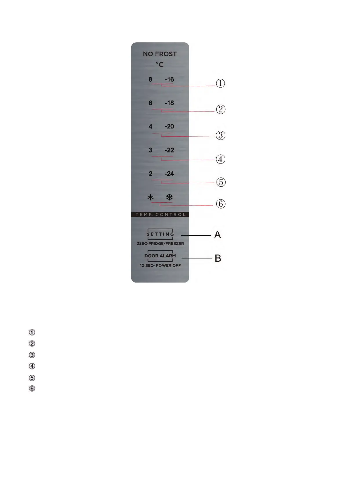 A. Botón de nivel de temperatura del frigorífico/congelador