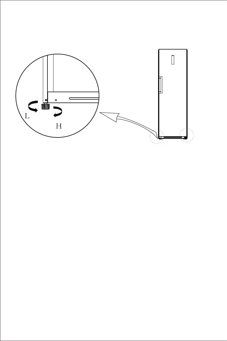 b. Turn the feet counterclockwise to lower the refrigerator;