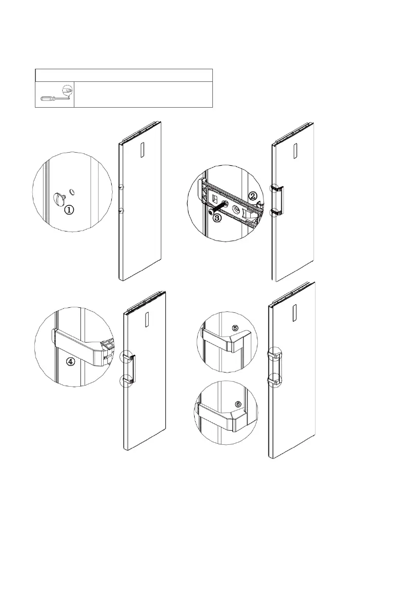 a. Retira los tapones de los agujeros ① de la puerta, y utilice un destornillador en cruz para fijar con