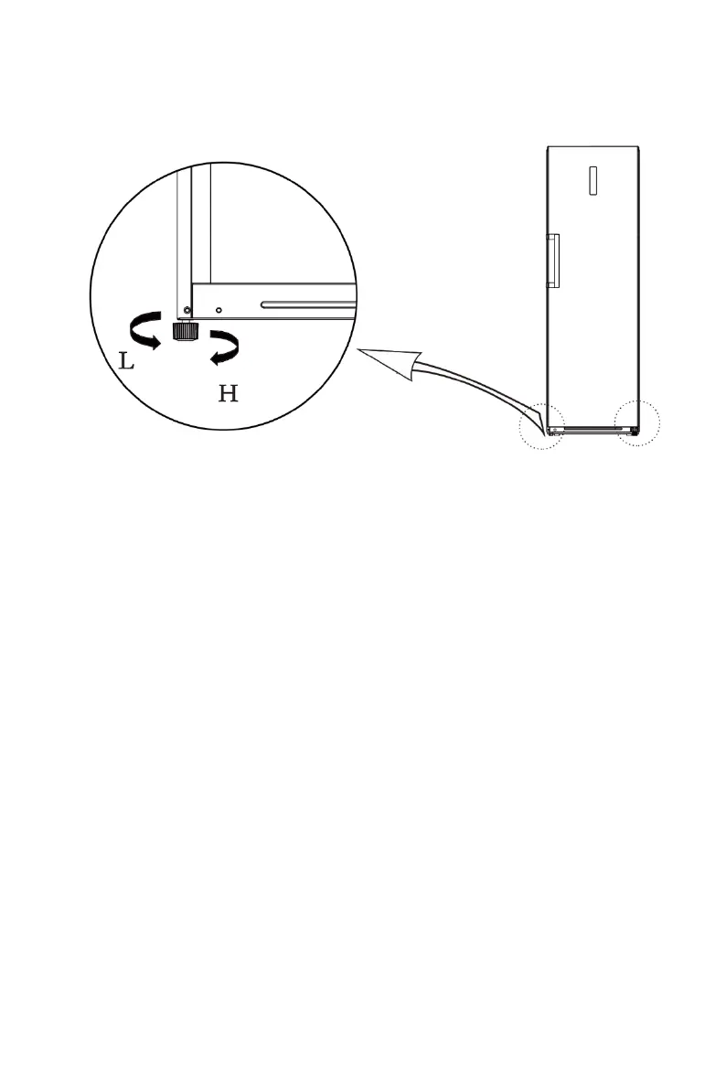 a. Gire las patas en el sentido de las agujas del reloj para levantar el frigorífico;