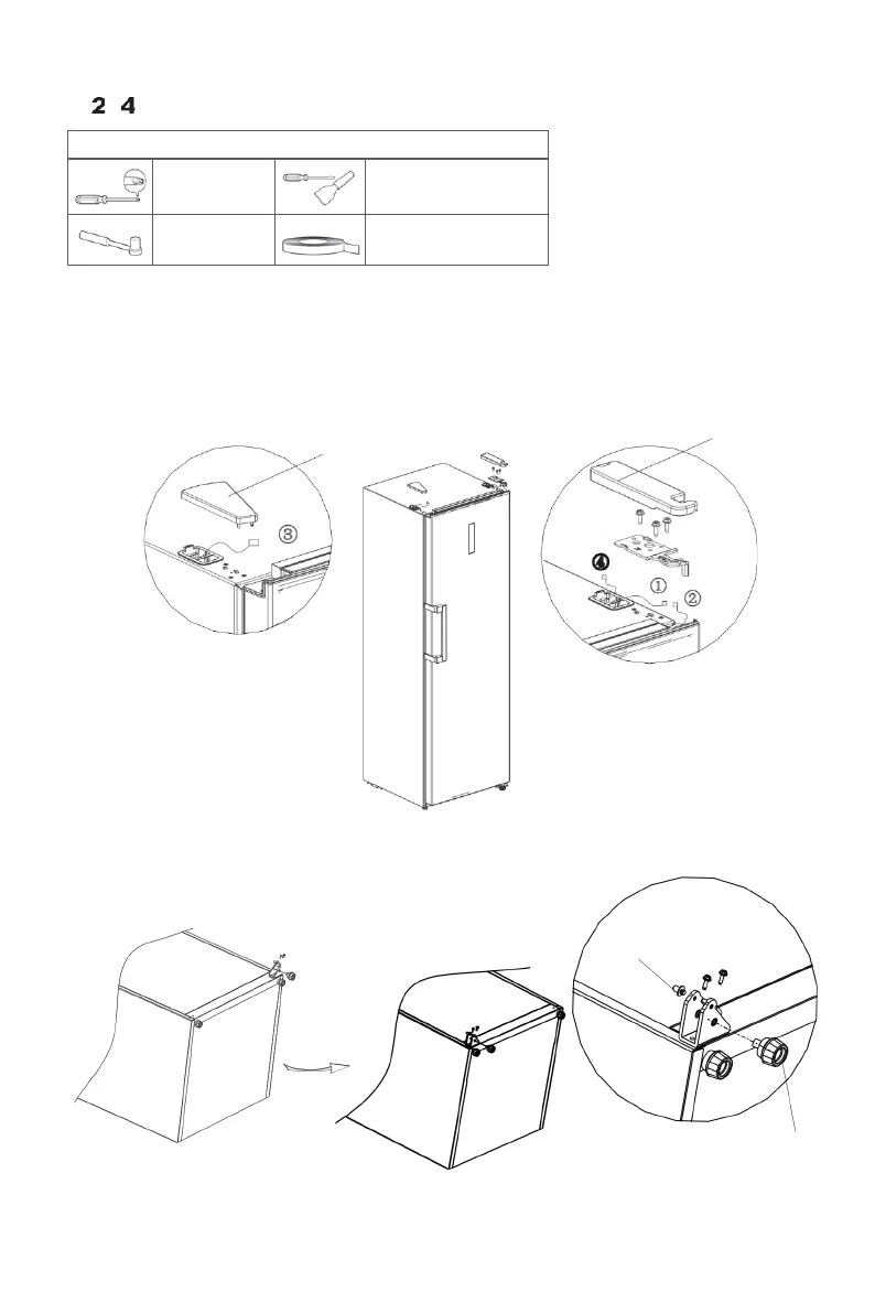 otro lado. Desenchufe el cable del lado derecho de la parte superior del frigorífico (①, ② cable de conexión).