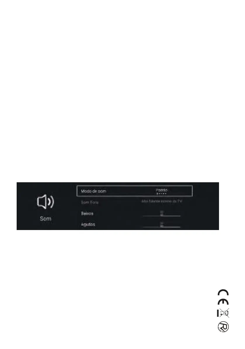 Pressione o botão ▲/▼ para selecionar Modo de som/Saída de som/Graves/Agudos/Equilíbrio/Deficientes