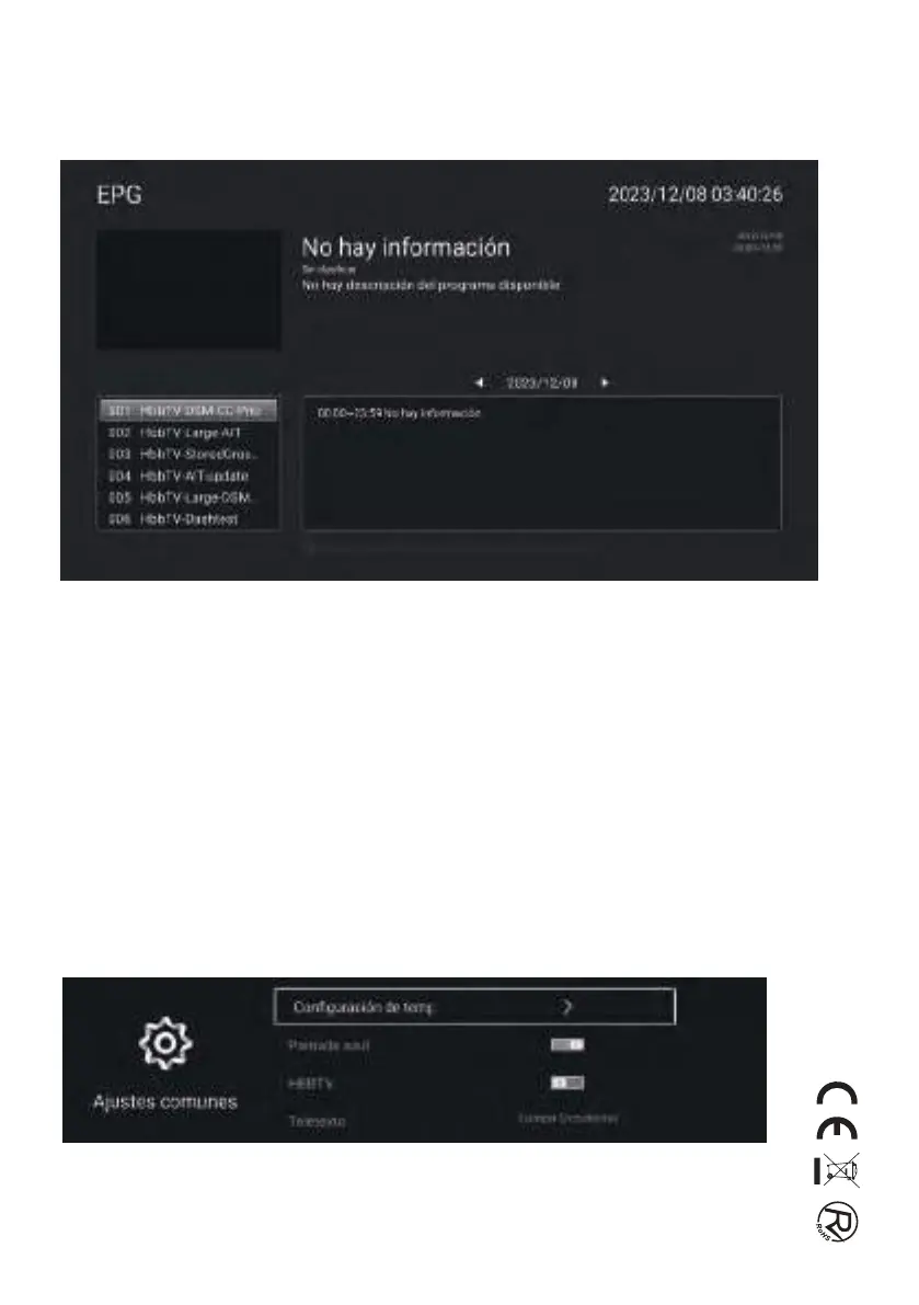 Presione el botón ▼/ ▲ para seleccionar EPG. Presione el botón MENÚ para ingresar al submenú.