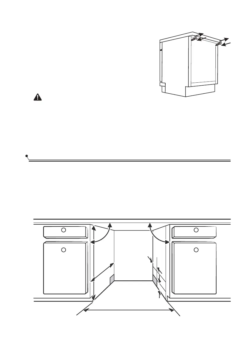 1. Less than 5 mm between the top of dishwasher and cabinet and the outer door