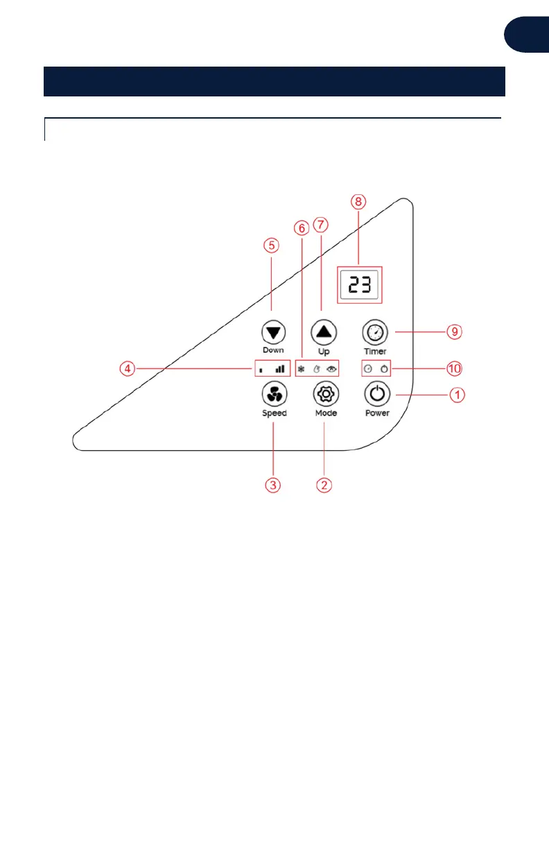 MODE: Pulse para cambiar el modo de funcionamiento entre ventilador,