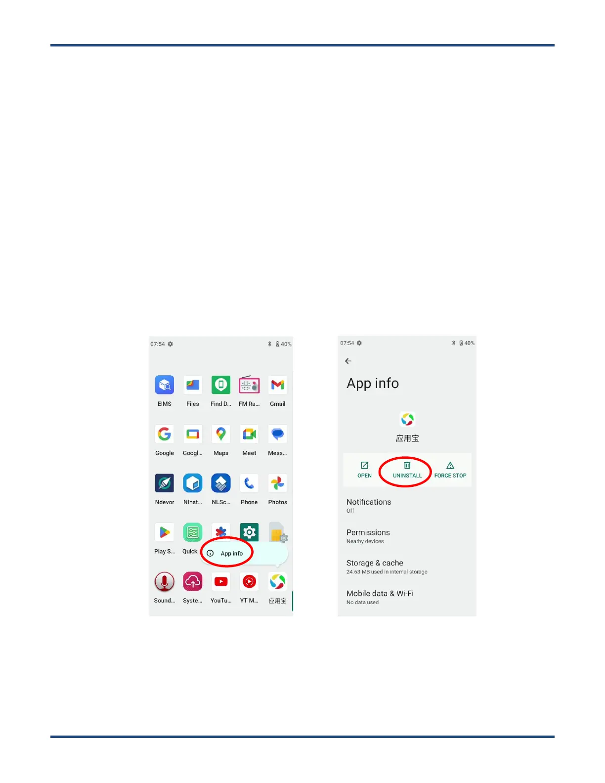 Follow the procedure below to remove an app from the MT93: