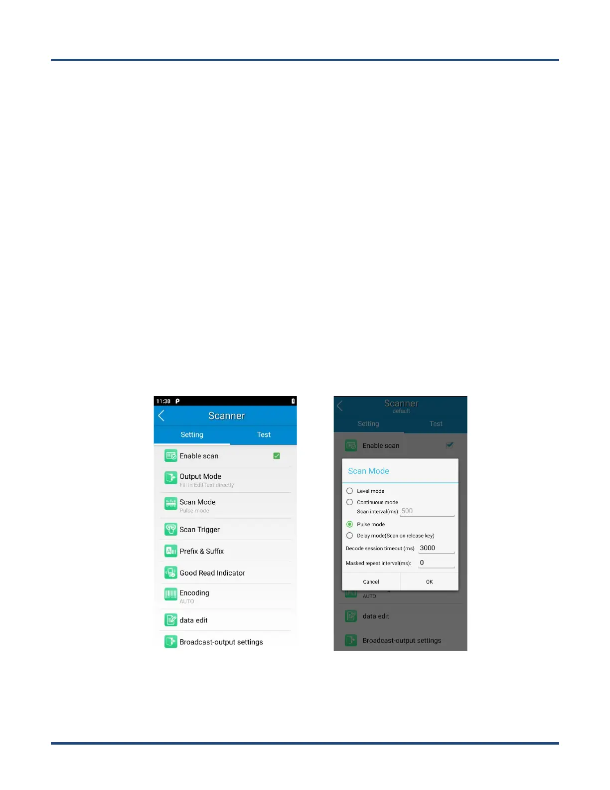 1. Level mode: Press and hold the scan trigger to start a decode session which continues until the trigger is released.