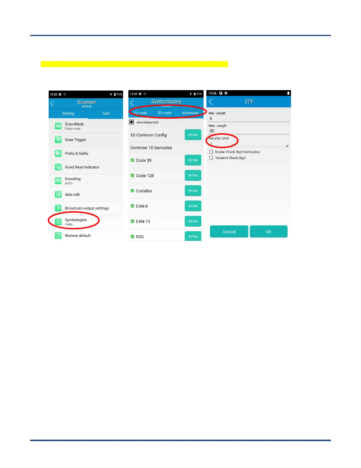1. Acuscan Decoding: When selected, the terminal only decodes the barcode aimed squarely by the aiming pattern. It is
