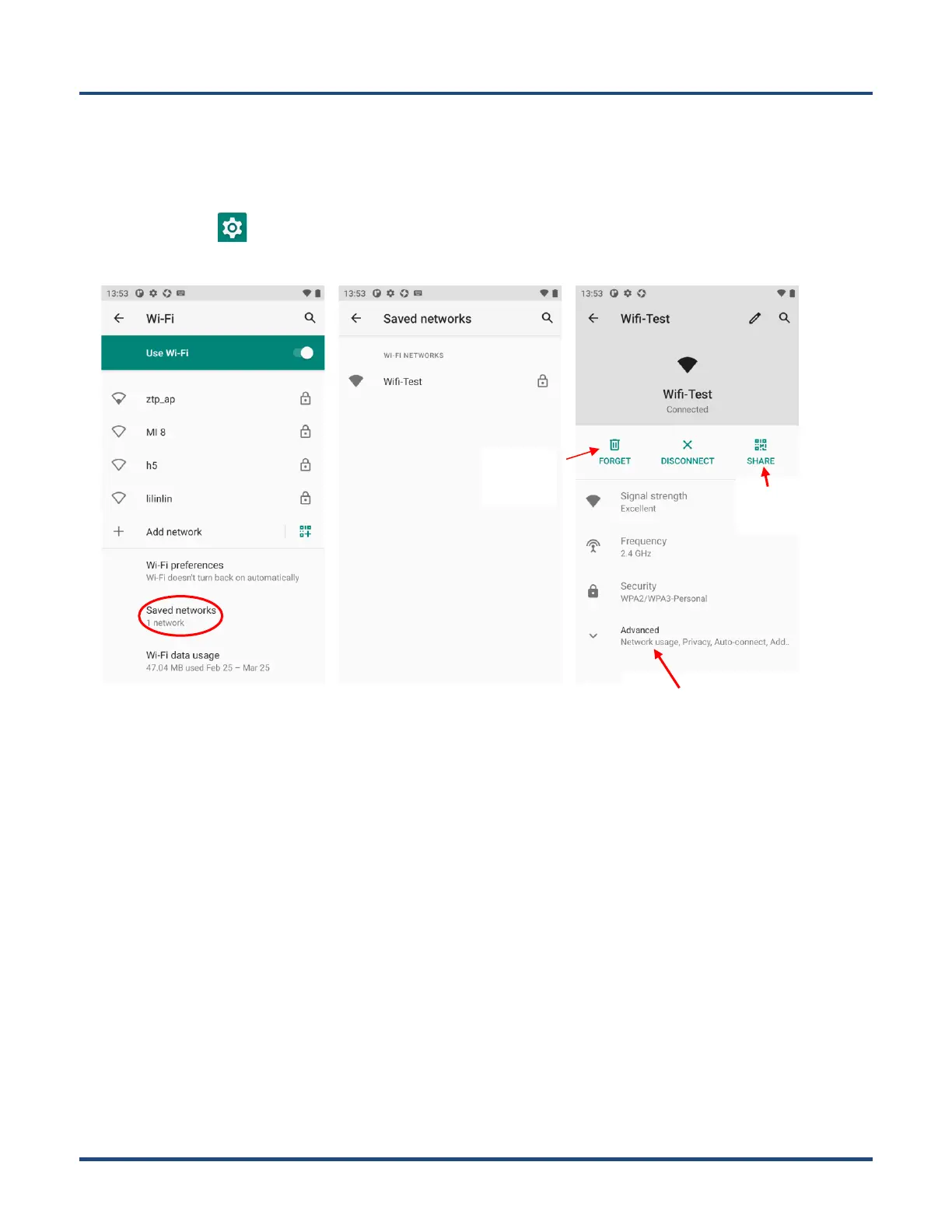 Tap the app icon then “Network & Internet” -> “Wi-Fi” -> “Saved networks”, then you can view the networks saved, or