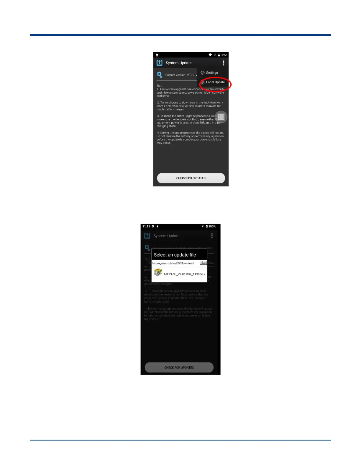 5. Select the update zip file. Then select “NEXTREBOOT” or “UPDATE”.