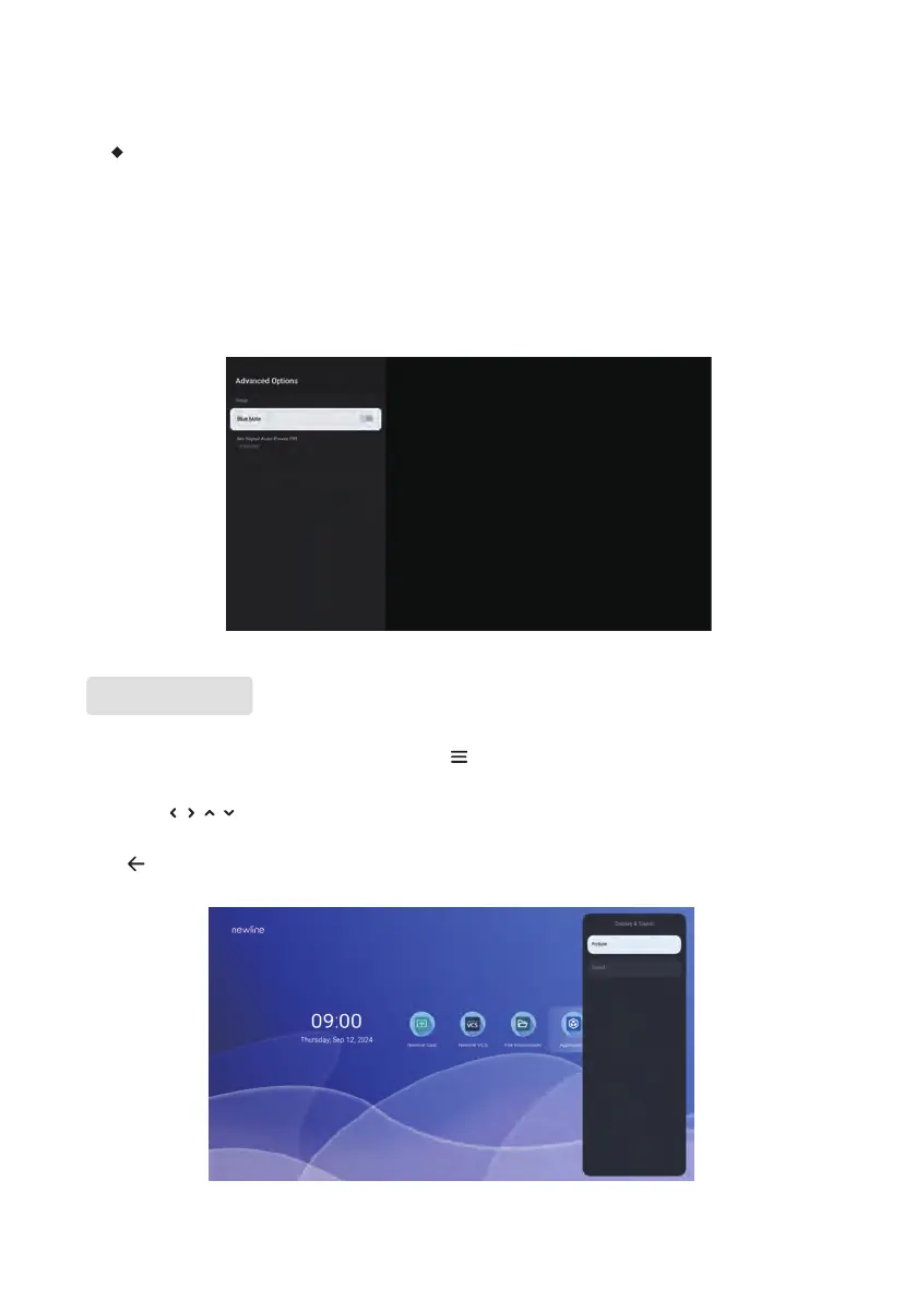 menu switching and option setting in the menu. lf you don't want the menu page, press