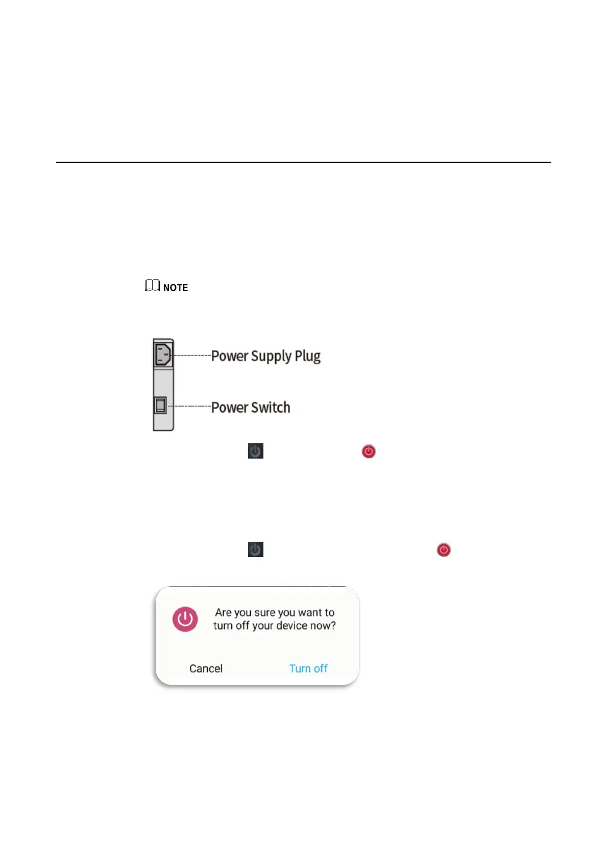 Step 2 In the Warning dialog box, tap Cancel to return to working mode. Tap Turn off to turn off