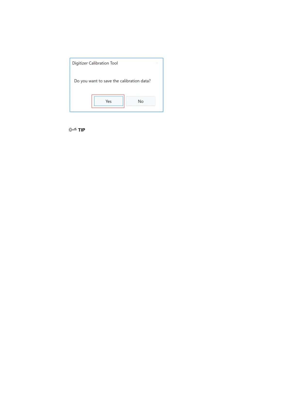 displayed. Click Yes to save calibration data.