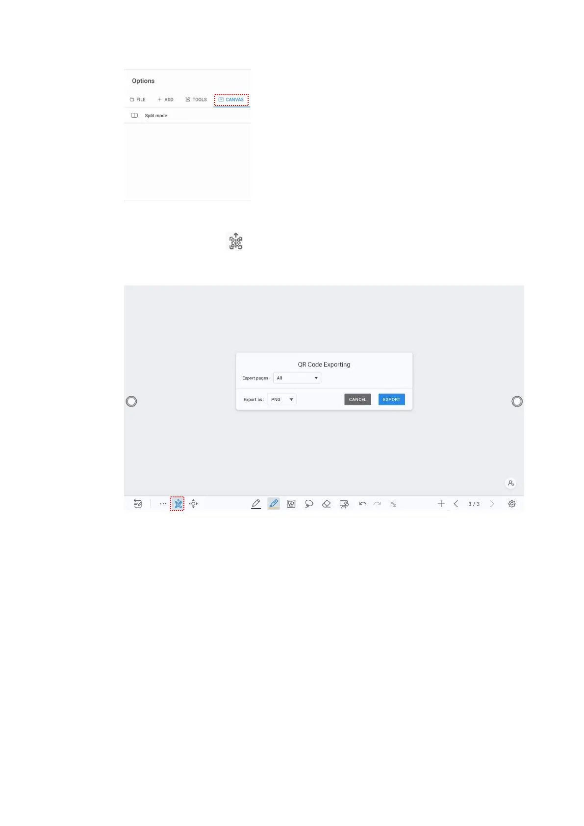 On the Whiteboard, tap to pop up QR code exporting windows. You can export the whiteboard