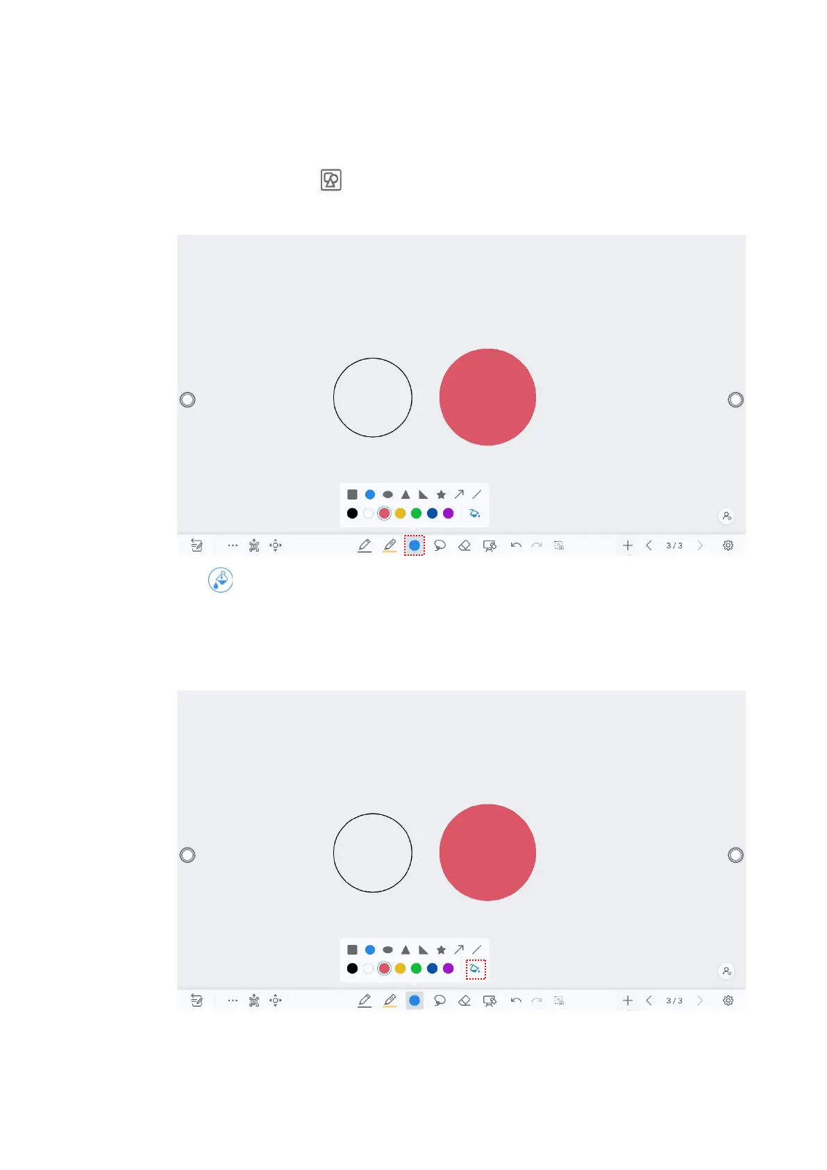On the whiteboard, tap to insert the shape or set the shapes and color.