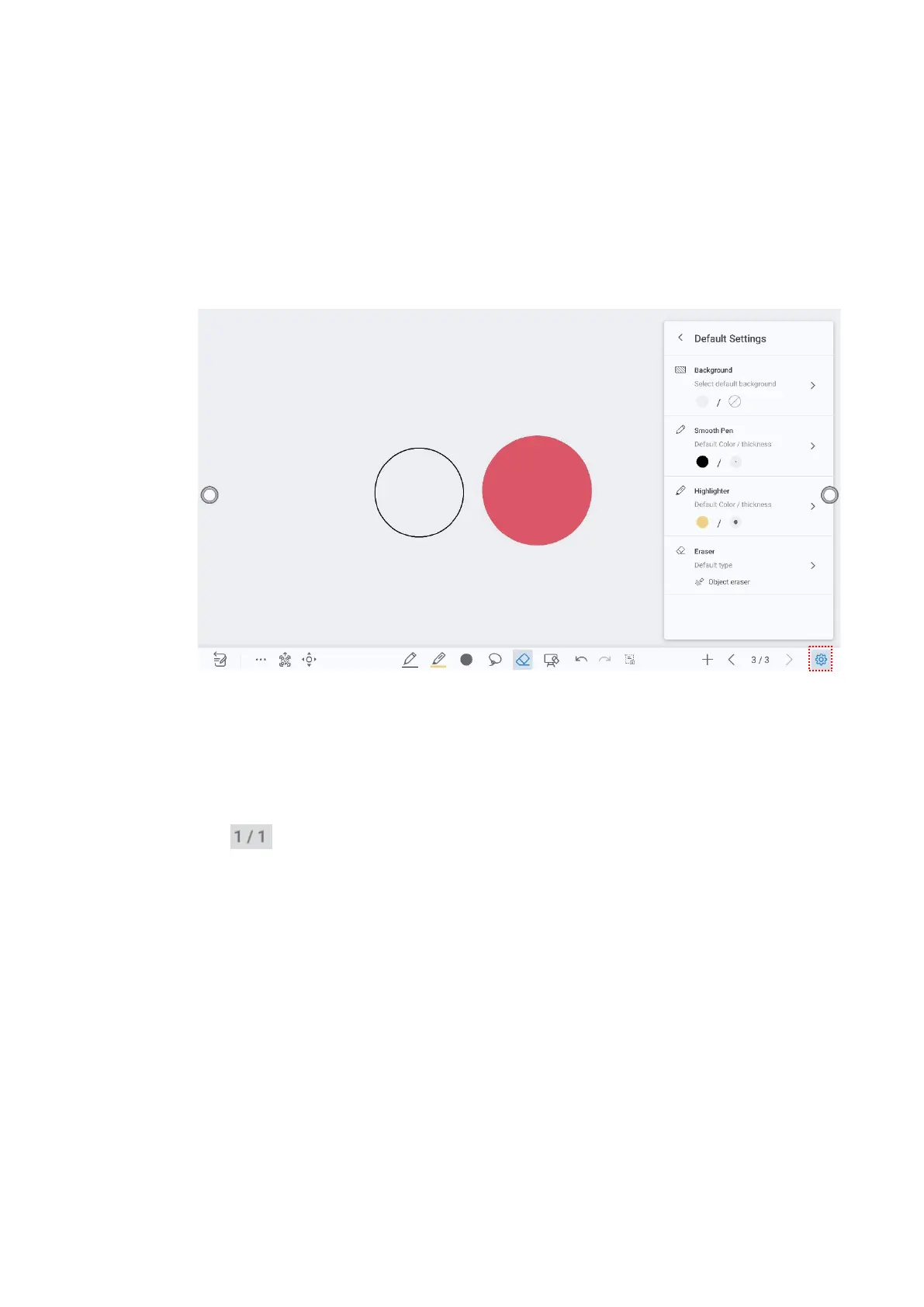 settings. Users can set whiteboard page background, change the color and thickness of Smooth Pen