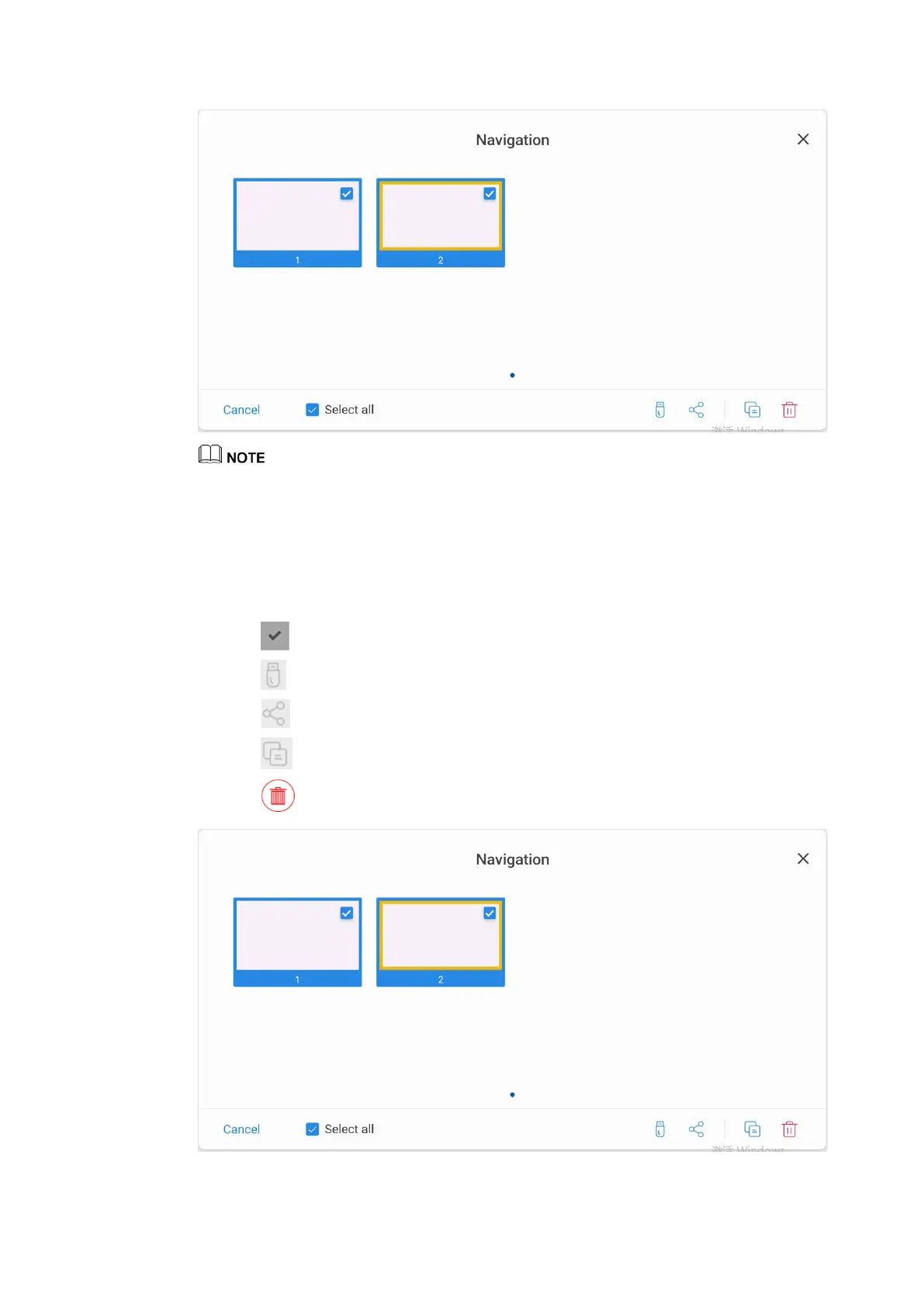 On the Navigation page, you can select or delete writing pages according to requirements, as shown