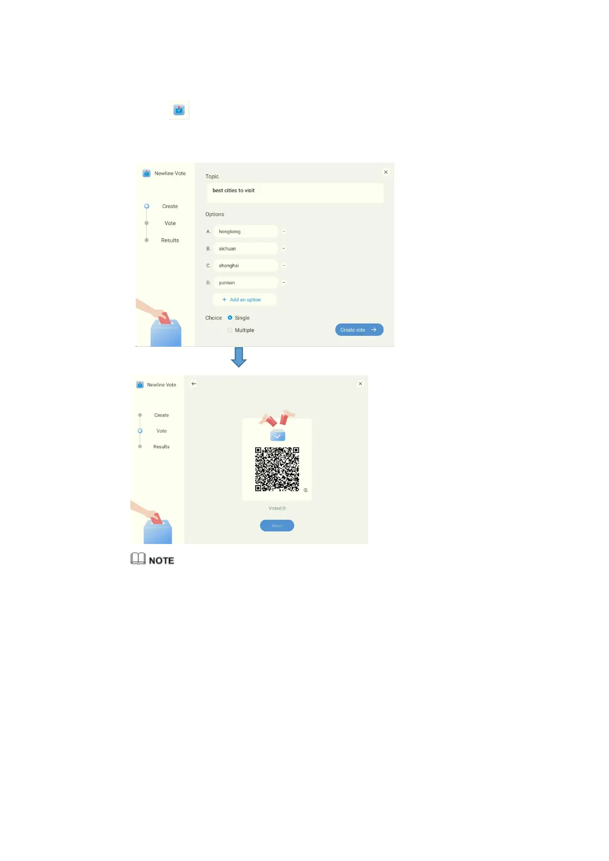 Tap the “ ” icon on the Application program to enter “Vote”: