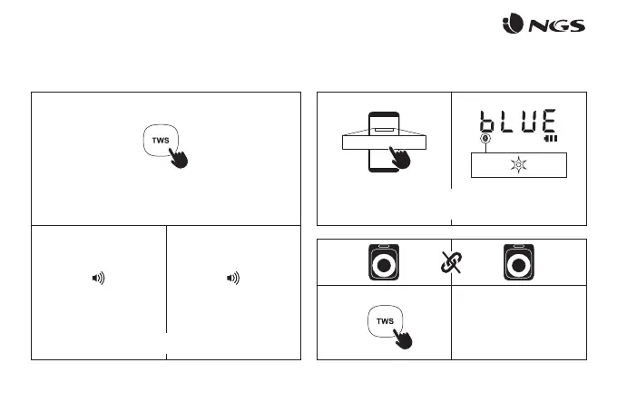 Paspauskite TWS mygtuką viename iš garsiakalbių, kad juos