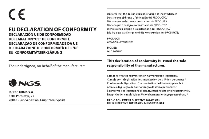 Bekijk gratis de handleiding van NGS WILD SWAG GO, stel vragen en lees de antwoorden op veelvoorkomende problemen, of gebruik onze assistent om sneller informatie in de handleiding te vinden of uitleg te krijgen over specifieke functies.