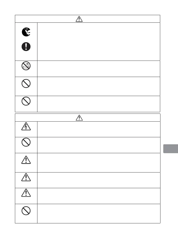 若在此情况下继续使用,将会导致火灾或灼伤。