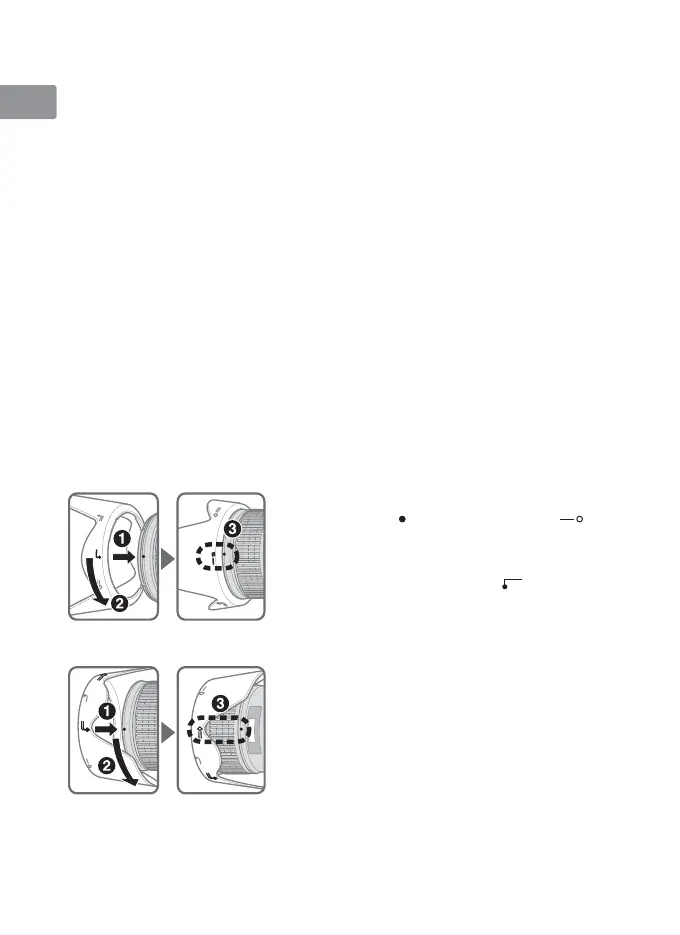 収納時はフードを逆向きにしてレンズに取り付けられ