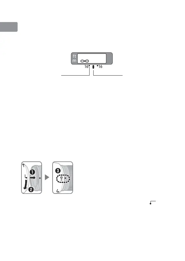 Align the lens hood lock mark (—{)