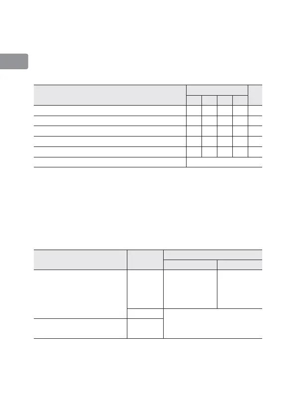 Haken (»✔«) zeigen unterstützte Funktionen, Striche (»—«)
