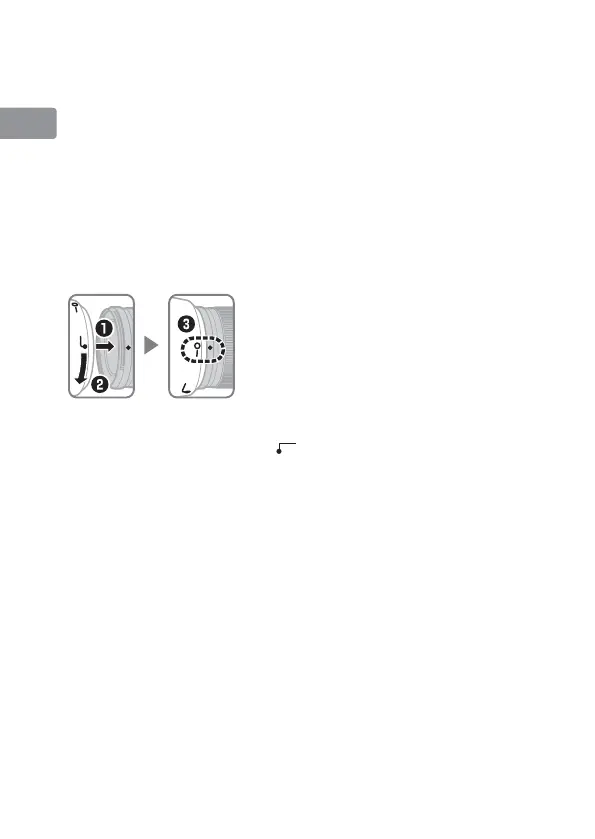 Ansetzen der Gegenlichtblende (●) aus (e).