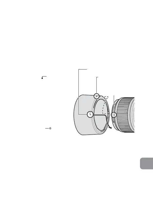 • 存放镜头遮光罩时,要反方向装在镜头上。