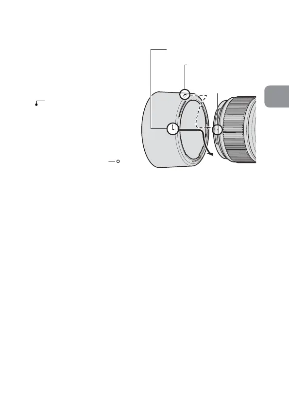 • Halten Sie die Gegenlichtblende zum Anbringen oder Abnehmen