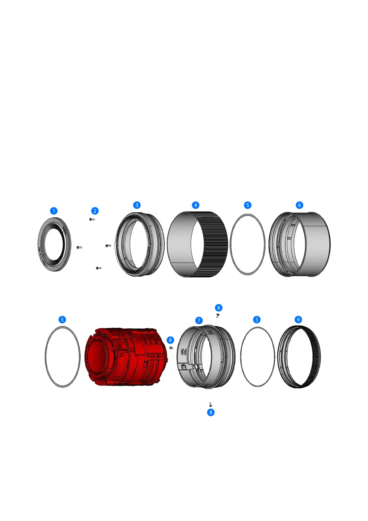 ● The parts marked in red in the illustration cannot be replaced indi-