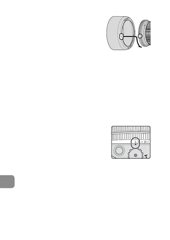 • 存放镜头遮光罩时,应反方向装在相机上。