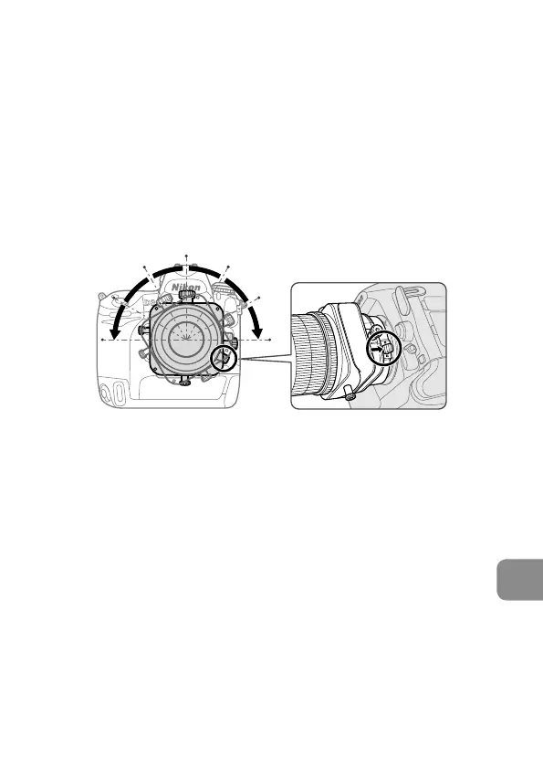 • 旋转镜头之前,请转动移轴及倾斜旋钮将移轴值及倾斜量设