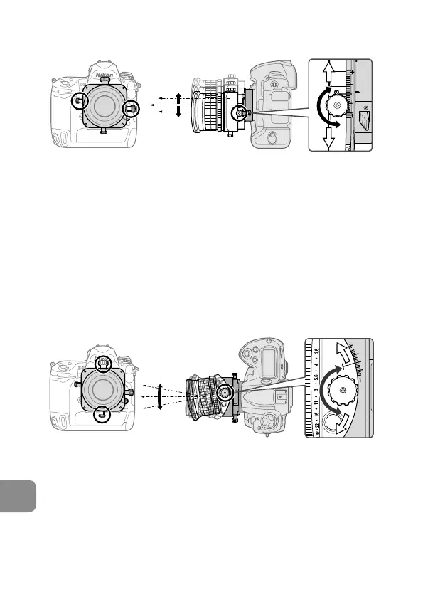 當旋轉移軸旋鈕時,鏡頭會呈現水平(或垂直,當鏡頭進行旋轉