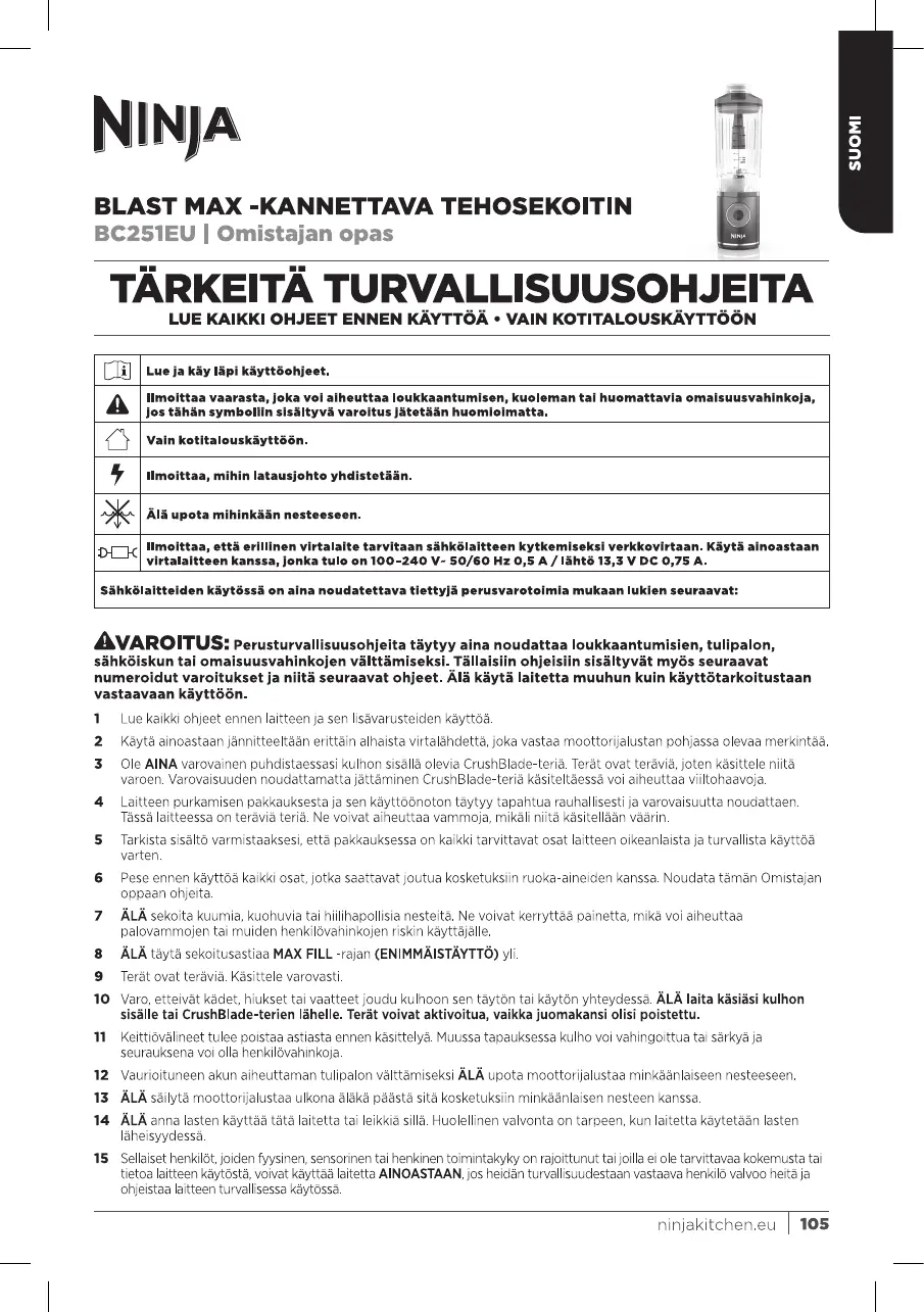 Ninja Blast MaxArgent BC251EUSL handleiding