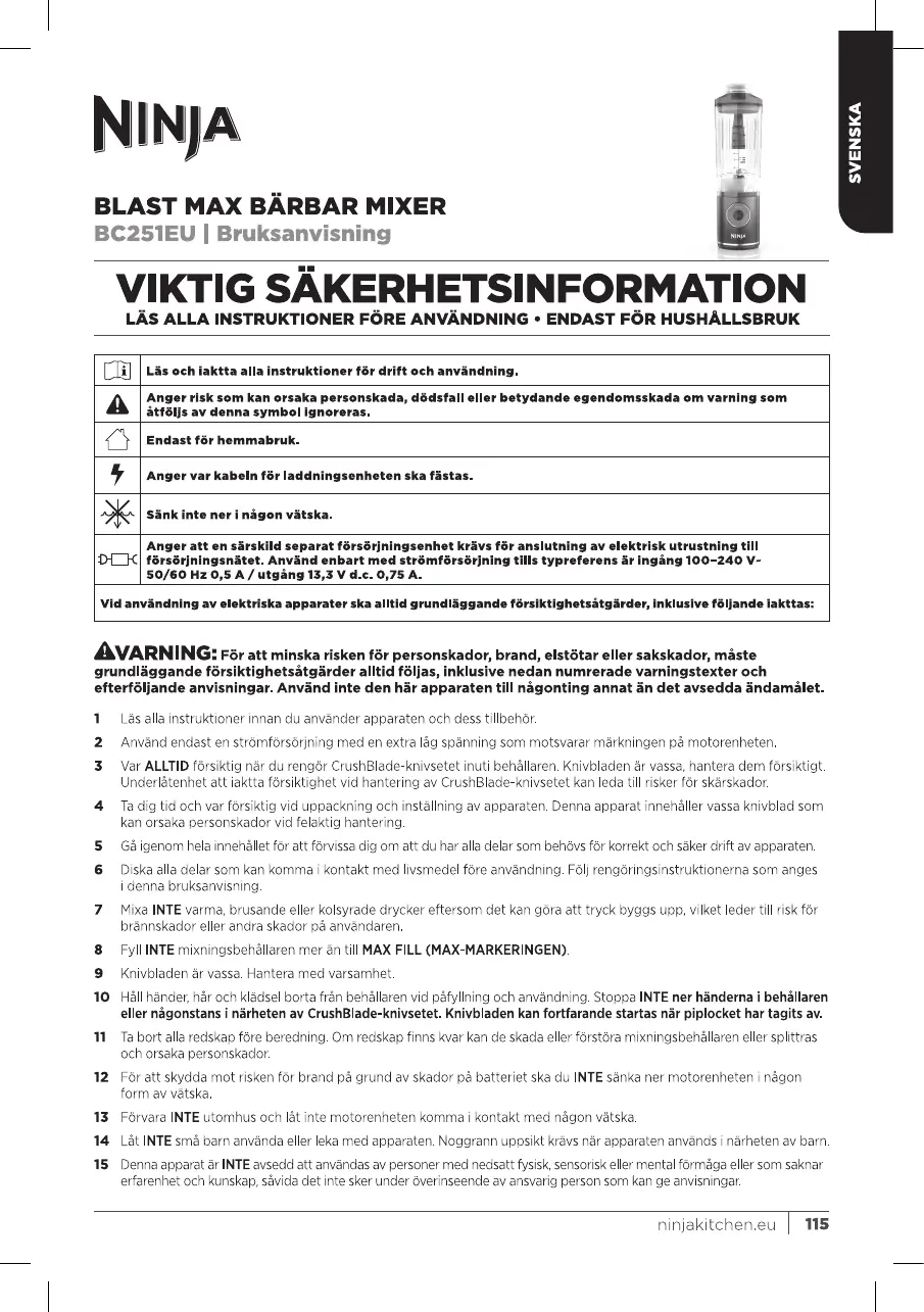 Bekijk gratis de handleiding van Ninja Blast MaxArgent BC251EUSL, stel vragen en lees de antwoorden op veelvoorkomende problemen, of gebruik onze assistent om sneller informatie in de handleiding te vinden of uitleg te krijgen over specifieke functies.