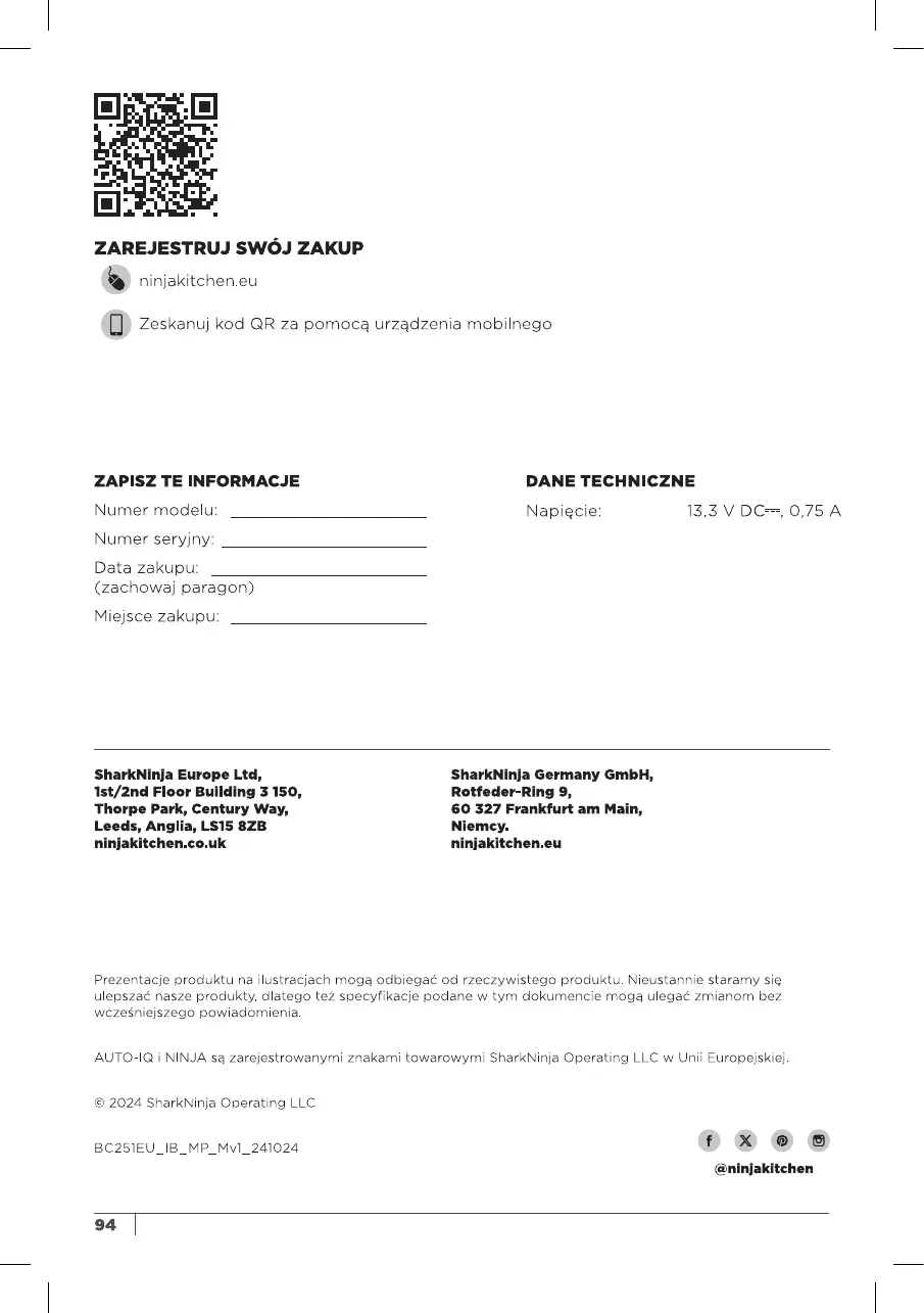 Ninja Blast MaxArgent BC251EUSL handleiding