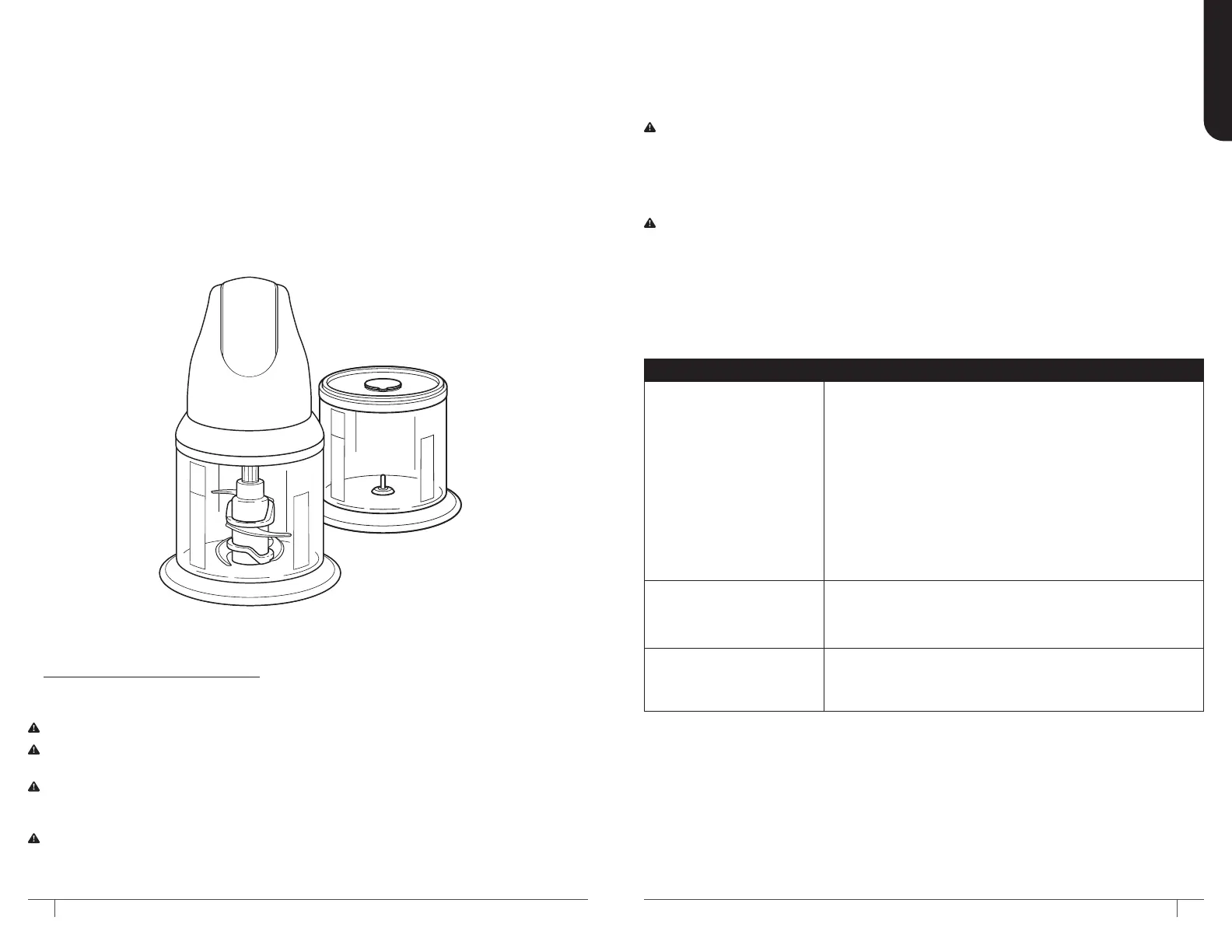 AVVERTENZA: il corpo motore non deve mai essere immerso in acqua o in qualsiasi altro liquido.